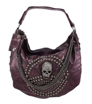 This incredible glossy gunmetal studded rhinestone skull handbag from 'Things2Die4' is a great addition to any woman's goth wardrobe collection. The metal skull on the front center of the purse is stunning and will certainly get everyone's attention. Do you have one these handbags yet?